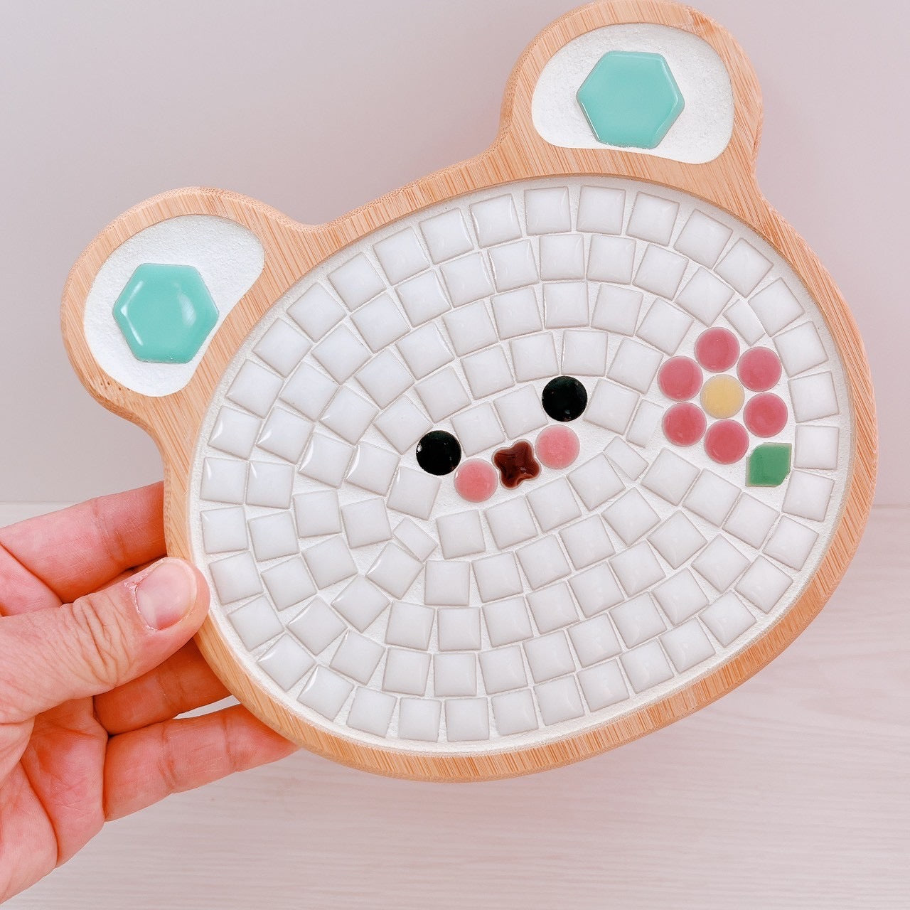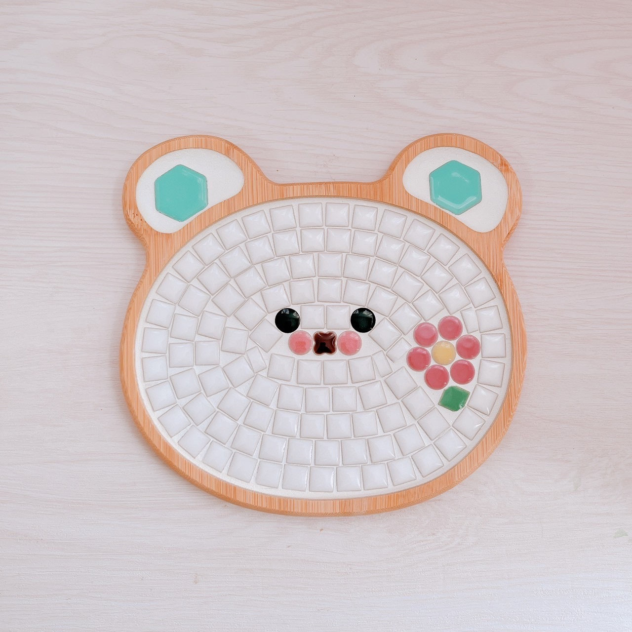 This is a tile art bear trivet. The ears are made of hexagonal tiles, and the face is white with floral accents for a cute design. If you think it's too cute to put a pot on, you can use it as a plate to put cups or sweets on.